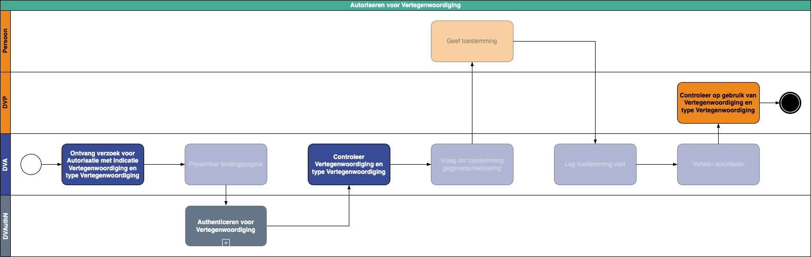 De totale procesgang van de functie Autoriseren voor Vertegenwoordiging kent de volgende stappen: