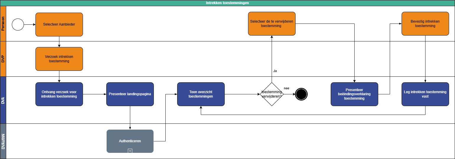 Hieronder staat flow behorende bij het intrekken van de langdurige toestemming.