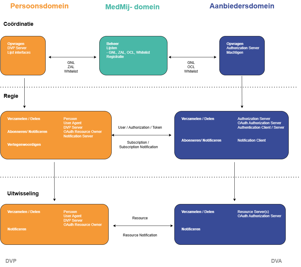 Decentrale regie en uitwisseling. Noch MedMij Beheer noch enige andere partij heeft een centrale of intermediaire rol in Regie of Uitwisseling tussen het Persoonsdomein en het Zorgaanbiedersdomein. Die intermediaire rol is er voor MedMij Beheer wel in Coördinatie. Dit beginsel is een uitwerking van principe 7.