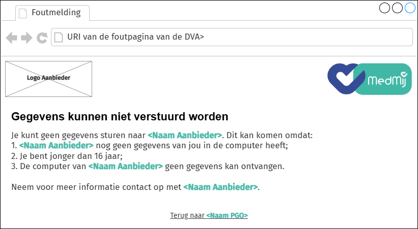 Je kunt geen gegevens sturen naar <Naam Aanbieder>. Dit kan komen omdat: