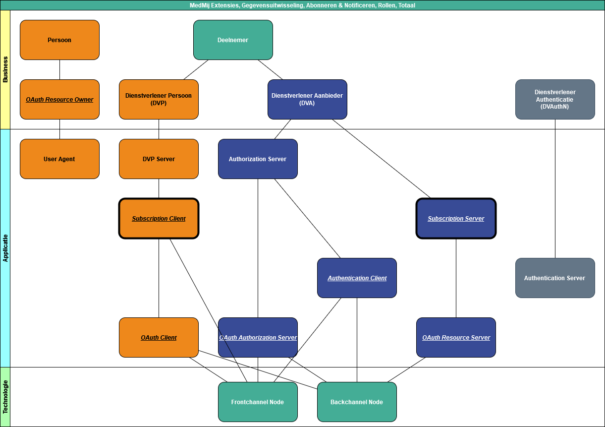 De MedMij Core beschrijft rol Resource Server. Nauw gerelateerd aan deze rol beschrijft deze extensie de rollen Subscription Server, Subscription Client, Notification Server en Notification Client.